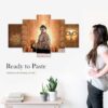 Buddha Set of Five 3D Framed Paintings for Wall Decoration – Ideal for Home, Living Room, and Bedroom (75 x 43 CM)